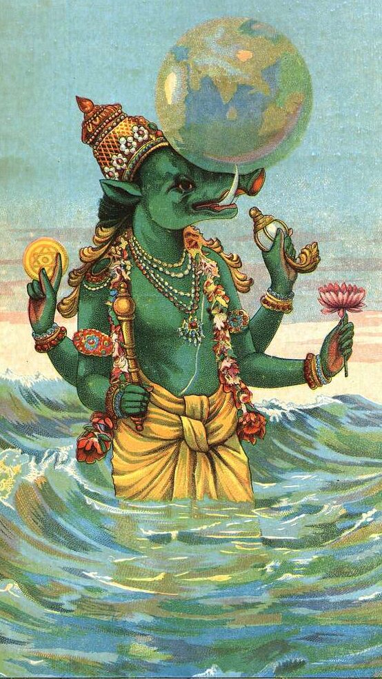 सृष्टि के प्रारंभ में जब पृथ्वी जल मग्न थी , तब पृथ्वी ने भगवान नारायण से अपने उद्धार के लिए प्रार्थना की । उनकी स्तुति से भगवान नारायण बहुत प्रसन्न हुए , और उनके उद्धार के लिए वराह अवतार लेकर पृथ्वी को समुद्र से ऊपर उठा लिया। वराह (शूकर) का अवतार पृथ्वी को गंदे पदार्थ के रसातल भाग से बाहर निकालना था । गंदी जगह से किसी चीज को बाहर निकालना शूकर का कार्य है।